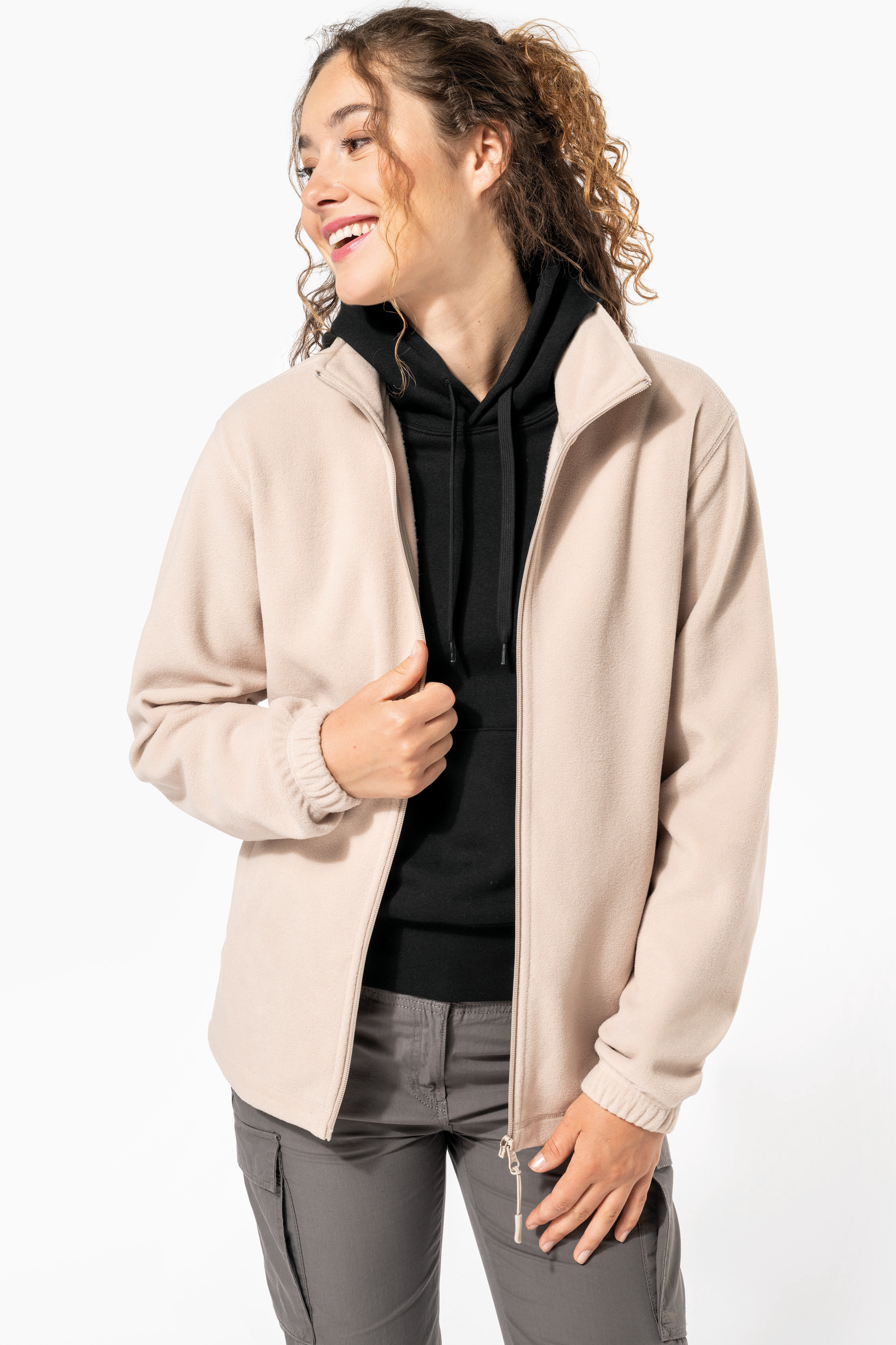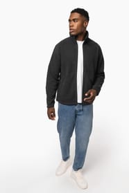 100% microfleece polyester with anti-pilling treatment. 2 zipped and piped side pockets. Zip fastening. Elasticated cuffs. Adjustable hem with elasticated drawcord (elastic is fixed inside to make it invisible).