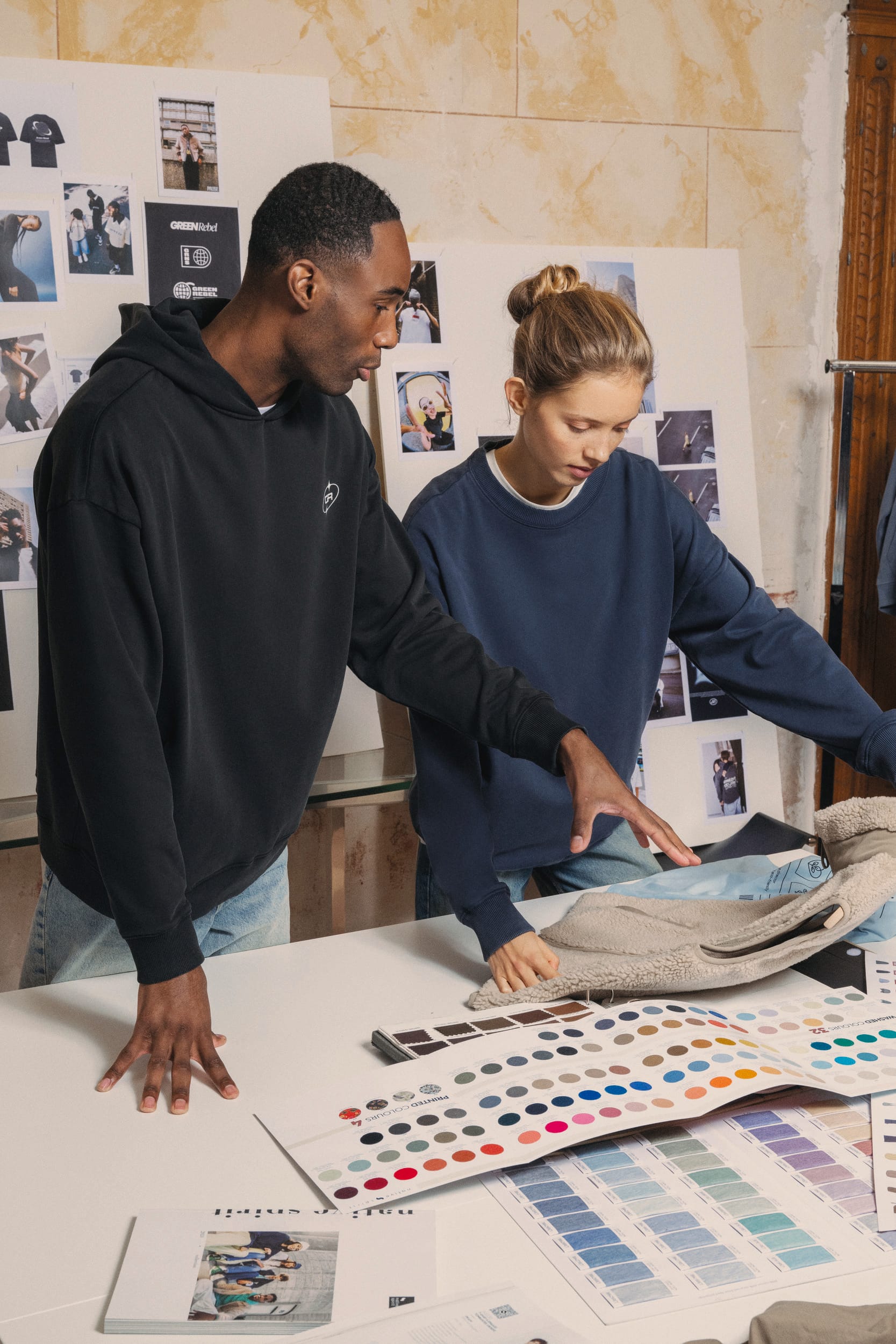 100% organic cotton. Combed cotton. Enzyme-washed. Oversized fit with dropped shoulders. 3-ply brushed fleece. 1/2 circle in the back. Hood lined in main material. Minimalist side pockets. 2x1 ribbed cuffs and hem. Matching herringbone taped neck inside collar. Garment dyed after assembly: colours may vary slightly from item to item. This product is likely to rub off in contact with light surfaces or garments.